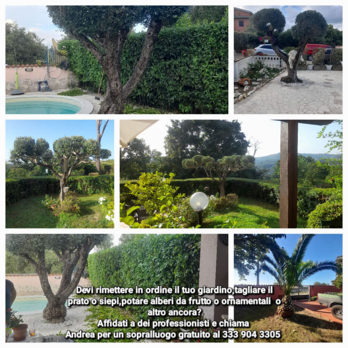 Esperienza pluriennale, automunito di pickup e attrezzatura professionale, a scoppio e a batteria. Esperto in potatura ulivi,alberi da frutto, ornamentali, siepi,taglio prati e bonifica di terreni con trattorino "trinciatutto". Manutenzione ordinaria e straordinaria dei giardini. Massima serietà.